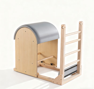 Ergonomic ladder barrels and spine correctors for stretching, posture, and alignment training.