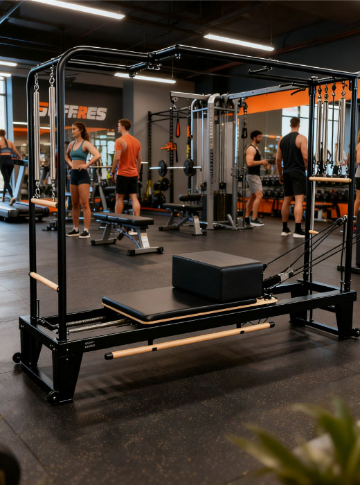 Premium trapeze table for advanced Pilates training, combining comfort, strength, and flexibility.