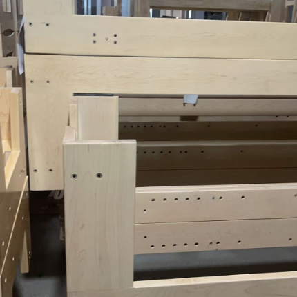 Wood / aluminum / stainless steel materials; frame dimensions, rail specifications, and load-bearing design.